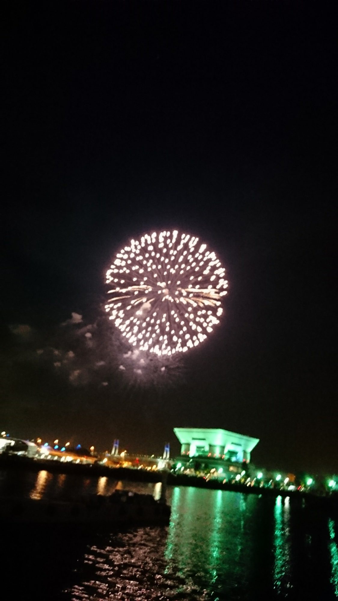 おすすめはこの写真の建物(真ん中)が見える位置が花火の打ち上げポイントです。
