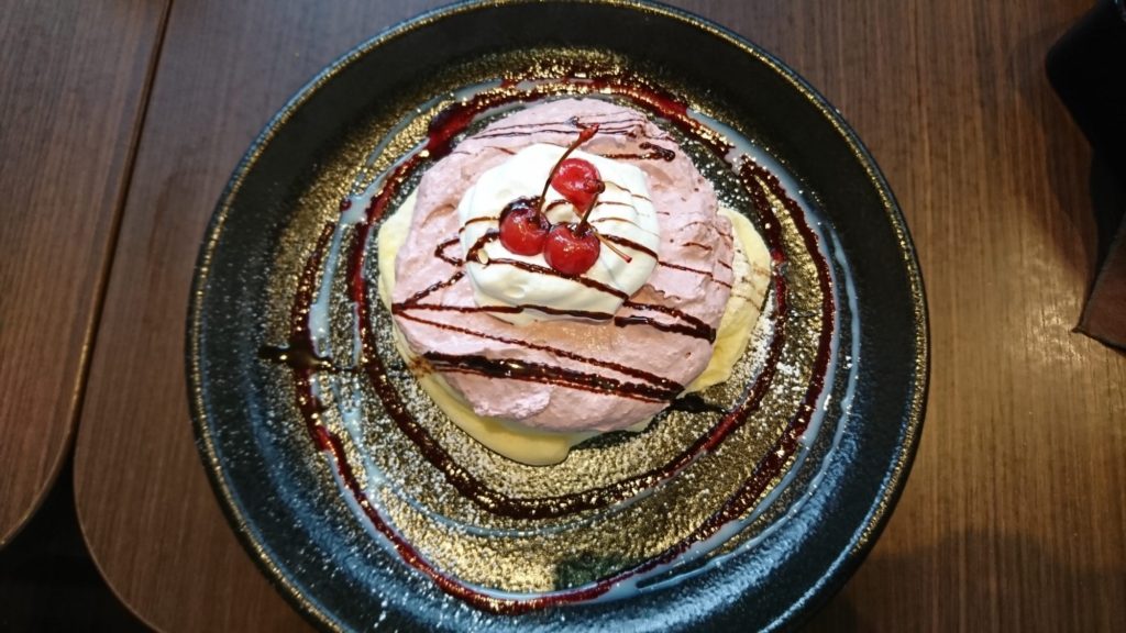 春限定のさくらんぼのクリームパンケーキ
