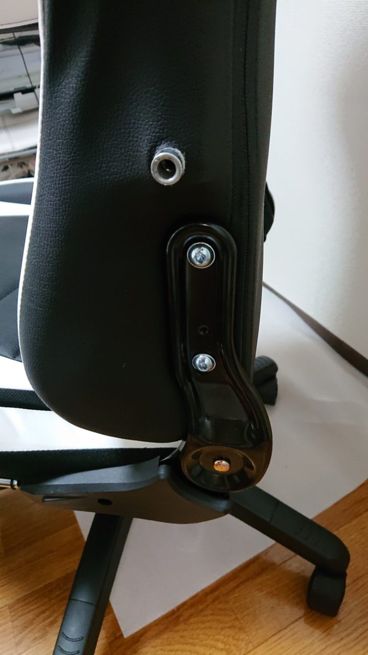 アームレストは六角ボルトで締めて、付属の穴かくしでふさぐだけで難しくないです。