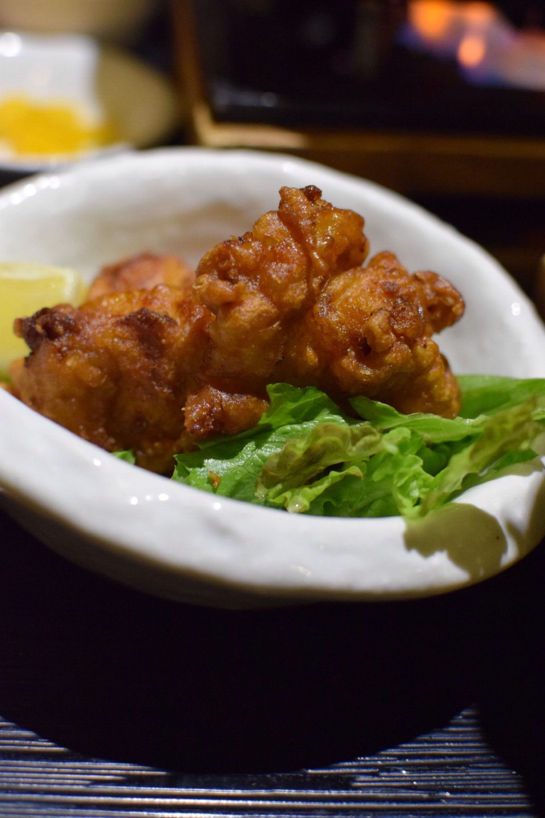 唐揚げか刺し身が選べましたが、腹ペコだったので唐揚げにしました。